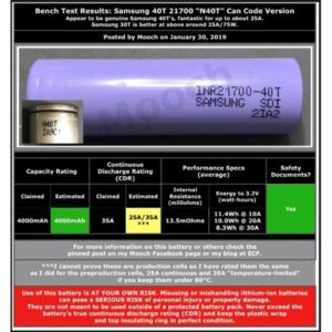 4000mAh 大容量, Mooch 測試可達到 35A 連續放電